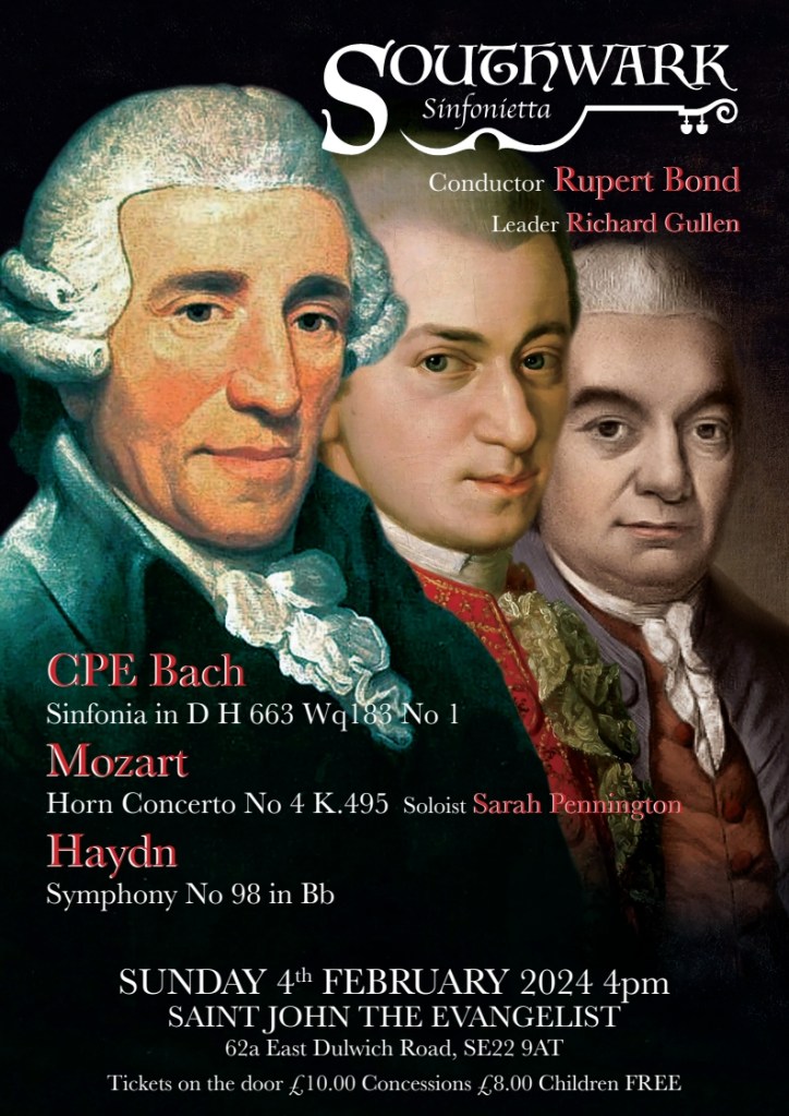 South East London chamber orchestra, playing Haydn, Mozart, Beethoven etc